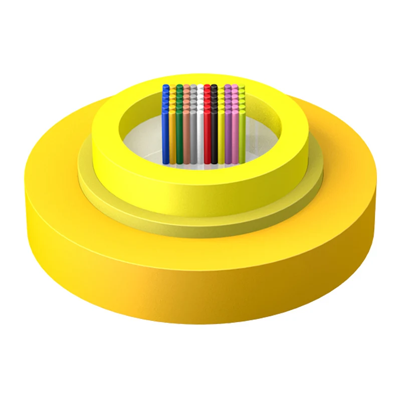 Innenbandfaserkabel verwendet das Glasfaserband als optisches Getriebemedium. Das Glasfaserband wird in ein lockeres Rohr aus hohem Modulmaterial eingeführt und dann mit einer Schicht Aramidenverstärkung beschichtet. Die äußerste Schicht ist mit einer Polyvinylchlorid (PVC) -Hülle extrudiert.