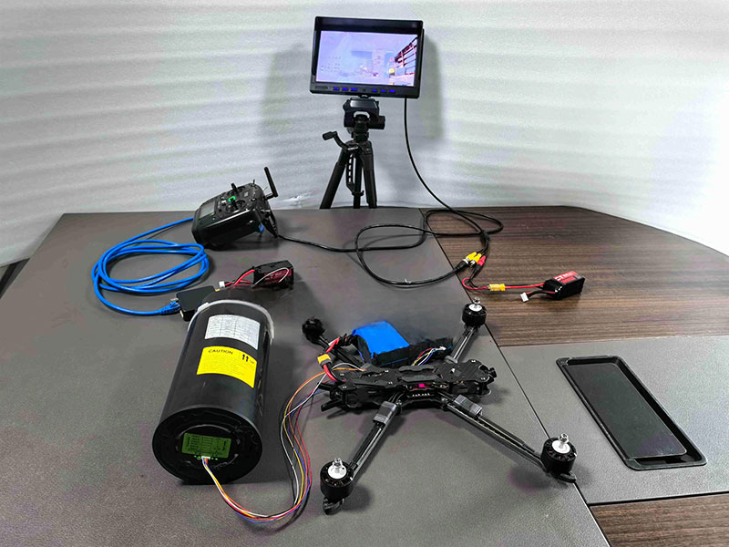 Das Glasfaserübertragungssystem ermöglicht sichere, Echtzeit-Video-Feeds in der Umgebung mit hoher Interferenzen, wobei die Übertragung sowohl für den Nah- als auch für langfristige Betriebsvorgänge von 3 bis 30 km-ideal reicht. Es besteht aus drei Hauptkomponenten: der Faserrolle,