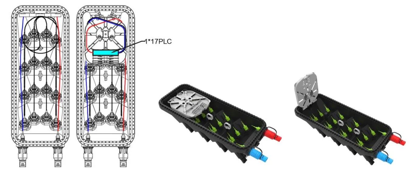 5. Der Innenraum ist mit 1x2 FBT -Splitter+ 1x16 Plc Splitter oder 1x17 Plc Splitter ausgestattet.
