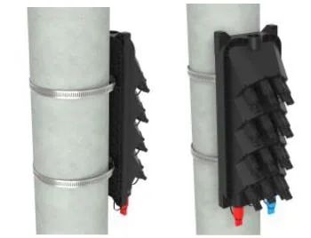 ⚫ Richten Sie den Körper des vorgeformten Steckers mit der Adapterschnalle aus, bis er befestigt ist. Schließen Sie die beiden Staubabdeckungen auf die gleiche Weise an.
